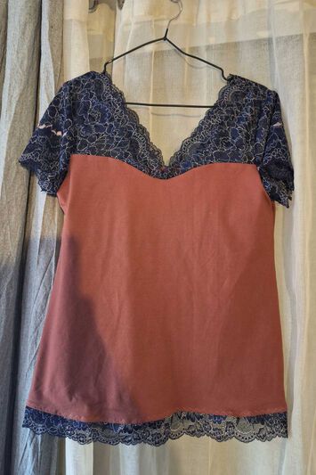 J'aime beaucoup l'ajout d'une bande de dentelle en bas du top, idée largement inspirée et recopiée sur Julie lors du test de la version top !