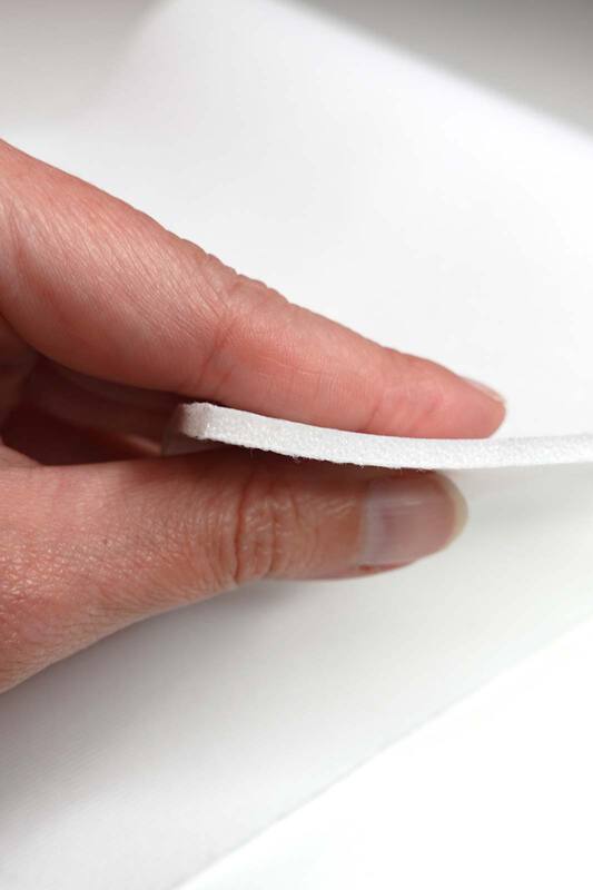 | COMPOSITION : Intérieur de la mousse : polyuréthane contrecollé d'une fine couche de polyamide sur chaque face Épaisseur : 3mm |