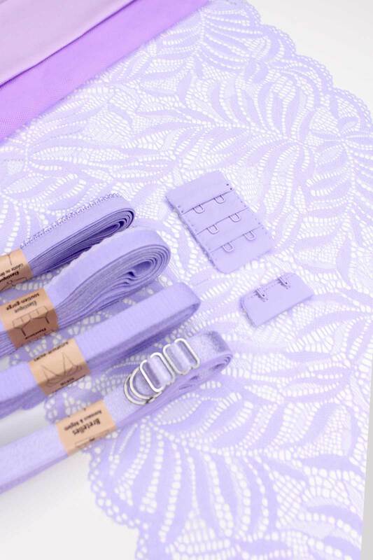 Chaque kit contient les matières et fournitures adaptées pour coudre au minimum une parure de lingerie, c'est-à-dire un soutien-gorge ou une brassière et un bas du corps, soit :