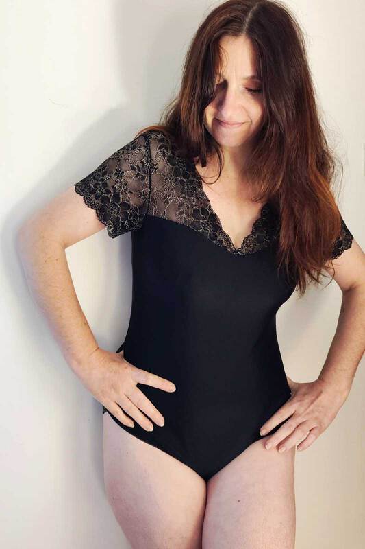 | Entretien : Toujours laver le tissu principal avant de le découper pour que le tricot puisse se rétracter et reprendre sa forme définitive. Les dentelles n'ont pas besoin d'être lavées avant la découpe, car elles sont "fixées" lors du processus industriel. Je te conseille cependant de laver ton article une fois cousu, avant de le porter. |
